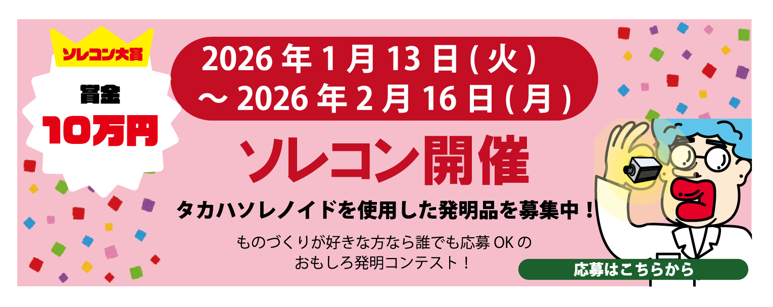国内一貫生産でつくるソレノイドの製品一覧 < < 新着情報 ご利用されておりますブラウザでは表示することができません。予めご了承ください。 メールマガジン登録mail magazine メディア情報mass media press release Official Facebookタカハの最新情報 X“今”をリアルタイムにお届け YouTube会社から製品のことまで Instagramタカハの世界観を共有 TikTokチラ見で見せますタカハ機工 タカハキッズルーム便り託児所情報 スタッフブログタカハのイベント日記 メカメカパラダイスモノづくりアイデア情報サイト